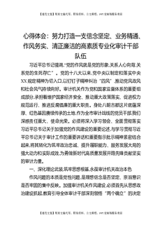 心得体会:努力打造一支信念坚定、业务精通、作风务实、清正廉洁的高素质专业化审计干部队伍.docx