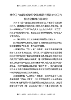 社会工作部部长学习全国基层治理法治化工作推进会精神心得体会.docx