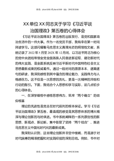 XX单位XX同志关于学习《习近平谈治国理政》第五卷的心得体会.docx