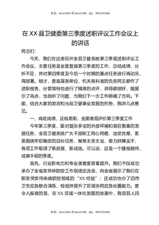 在XX县卫健委第三季度述职评议工作会议上的讲话.docx