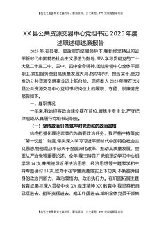 XX县公共资源交易中心党组书记2025年度述职述德述廉报告.docx