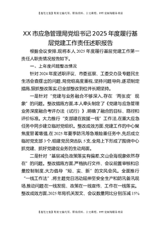 XX市应急管理局党组书记2025年度履行基层党建工作责任述职报告.docx