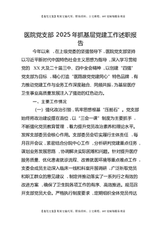 医院党支部2025年抓基层党建工作述职报告.docx