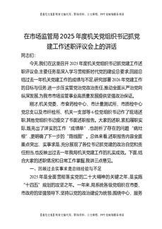 在市场监管局2025年度机关党组织书记抓党建工作述职评议会上的讲话.docx