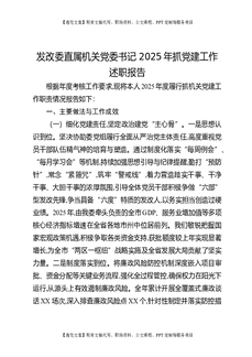 发改委直属机关党委书记2025年抓党建工作述职报告.docx