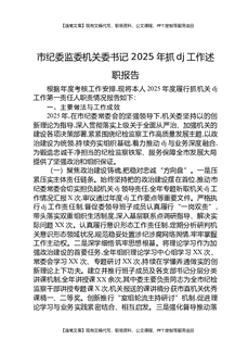 市纪委监委机关党委书记,2025年抓党建工作述职报告.docx