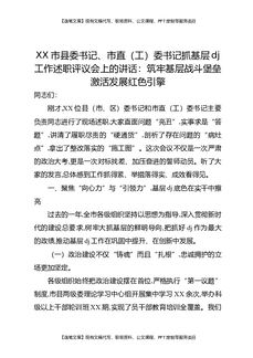 XX市县委书记、市直党(工)委书记抓基层党建工作述职评议会上的讲话:筑牢基层战斗堡垒,激活发展红色引擎.docx