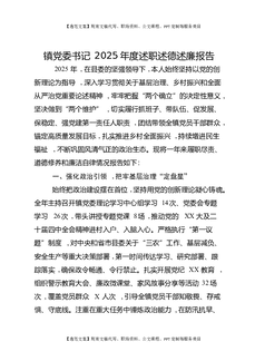 镇党委书记2025年度述职述德述廉报告.docx