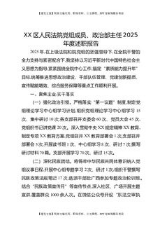 XX区人民法院党组成员、政治部主任2025年度述职报告.docx