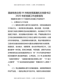 国家税务总局XX市税务局直属机关党委书记2025年抓党建工作述职报告.docx