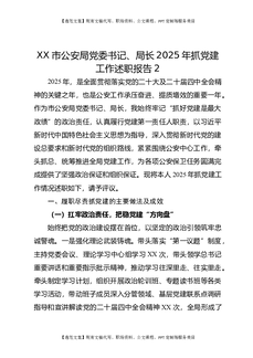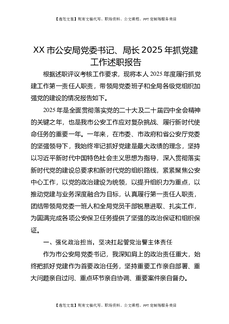 XX市公安局党委书记、局长2025年抓党建工作述职报告2.docx