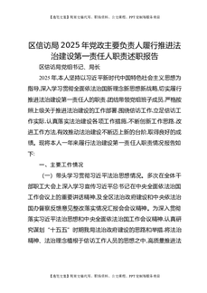 区信访局2025年党政主要负责人履行推进法治建设第一责任人职责述职报告.docx