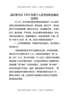 县纪委书记2025年度个人述学述职述廉述法报告.docx