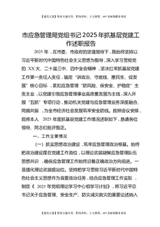 市应急管理局党组书记2025年抓基层党建工作述职报告.docx