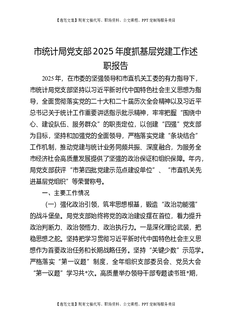 市统计局党支部2025年度抓基层党建工作述职报告.docx
