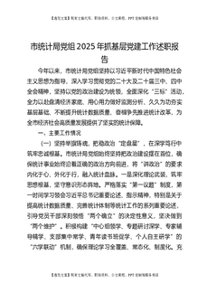 市统计局党组2025年抓基层党建工作述职报告.docx
