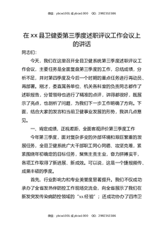 在XX县卫健委第三季度述职评议工作会议上的讲话.docx