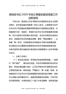 局党组书记2025年前三季度抓基层党建工作述职报告.docx