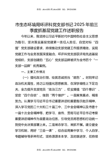 市生态环境局环评科党支部书记2025年前三季度抓基层党建工作述职报告.docx