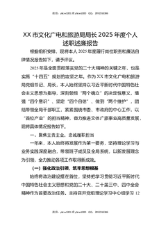 XX市文化广电和旅游局局长2025年度个人述职述廉报告.docx