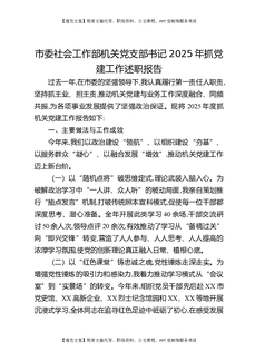 市委社会工作部机关党支部书记2025年抓党建工作述职报告.docx