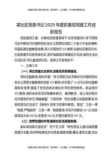 某社区党委书记2025年度抓基层党建工作述职报告.docx