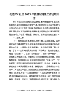 街道XX社区2025年抓基层党建工作述职报告.docx