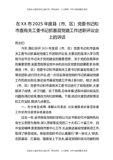 在XX市2025年度县(市、区)党委书记和市直有关工委书记抓基层党建工作述职评议会上的讲话.docx