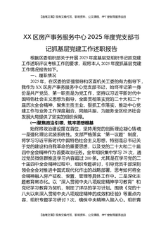 XX区房产事务服务中心2025年度党支部书记抓基层党建工作述职报告.docx