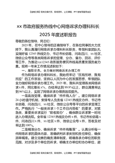 XX市政府服务热线中心网络诉求办理科科长2025年度述职报告.docx