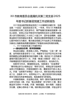 XX市教育委员会直属机关第二党支部2025年度书记抓基层党建工作述职报告.docx