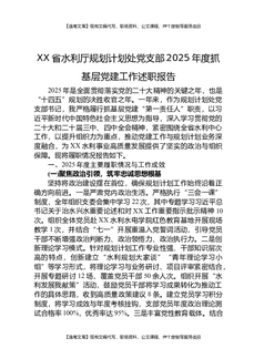 XX省水利厅规划计划处党支部2025年度抓基层党建工作述职报告.docx