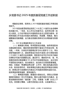 乡党委书记2025年度抓基层党建工作述职报告.docx
