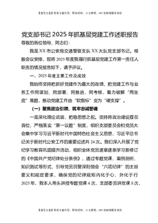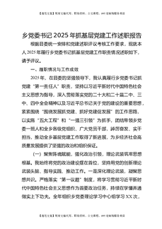 乡党委书记2025年抓基层党建工作述职报告.docx