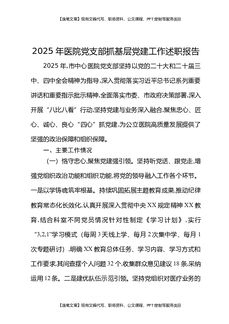 2025年医院党支部抓基层党建工作述职报告.docx