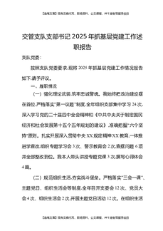 交管支队支部书记2025年抓基层党建工作述职报告.docx