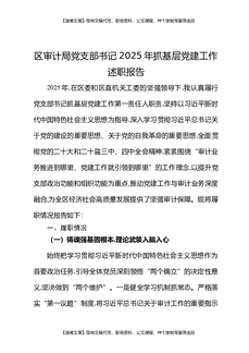 区审计局党支部书记2025年抓基层党建工作述职报告.docx