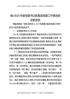 镇2025年度党委书记抓基层党建工作情况的述职报告.docx
