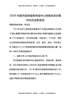 2025年度市政府服务热线中心网络诉求办理科科长述职报告.docx