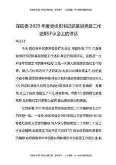 在区委2025年度党组织书记抓基层党建工作述职评议会上的讲话.docx