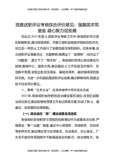 党建述职评议考核综合评价意见:强基固本筑堡垒,凝心聚力促发展.docx