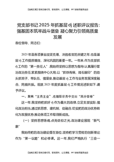 党支部书记2025年抓基层党建述职评议报告:强基固本筑牢战斗堡垒,凝心聚力引领高质量发展.docx
