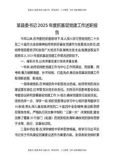 某县委书记2025年度抓基层党建工作述职报告.docx