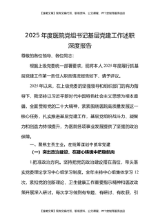 2025年度医院党组书记基层党建工作述职深度报告.docx