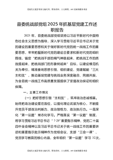 县委统战部党组2025年抓基层党建工作述职报告.docx