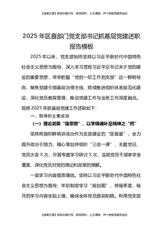 2025年区直部门党支部书记抓基层党建述职报告模板.docx