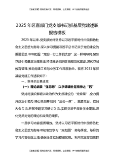 2025年区直部门党支部书记抓基层党建述职报告模板.docx