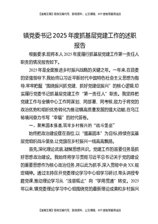 镇党委书记2025年抓基层党建工作述职报告.docx