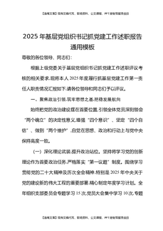 2025年基层党组织书记抓党建工作述职报告通用模板.docx