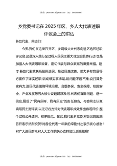 乡党委书记在2025年区,乡人大代表述职评议会上的讲话.docx